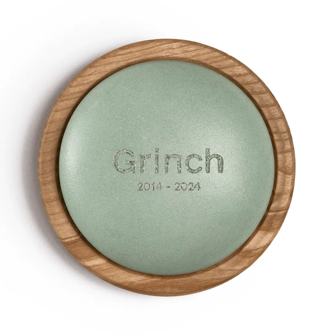 The Remembrance Stone is handcrafted from your pet’s ashes, making each piece truly unique. It preserves memory, symbolises love, and embodies the lasting bond you shared. The pet’s name and years of life are engraved on the stone, while the wooden base adds warmth and a natural touch.