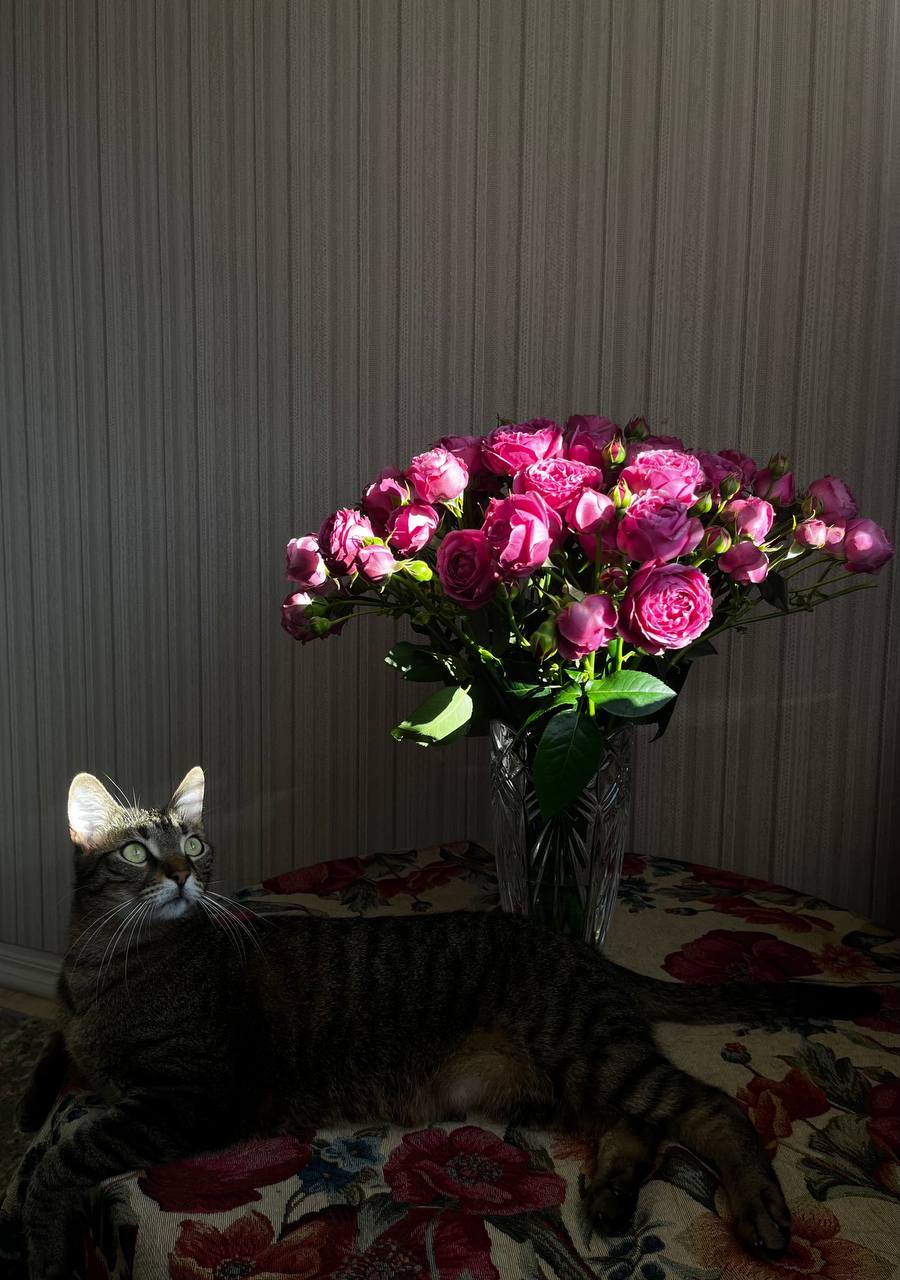 Будь-які квіти не обходили увагу Айрона. Він їх і довго нюхав, і їв, і просто сидів чи лежав біля них, і перевертав вазу з ними - все залежало від настрою.